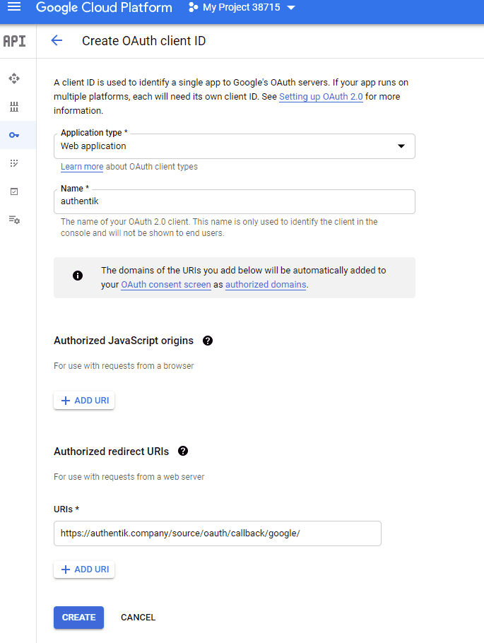 Under Directory > Federation & Social login click Create Google OAuth Source