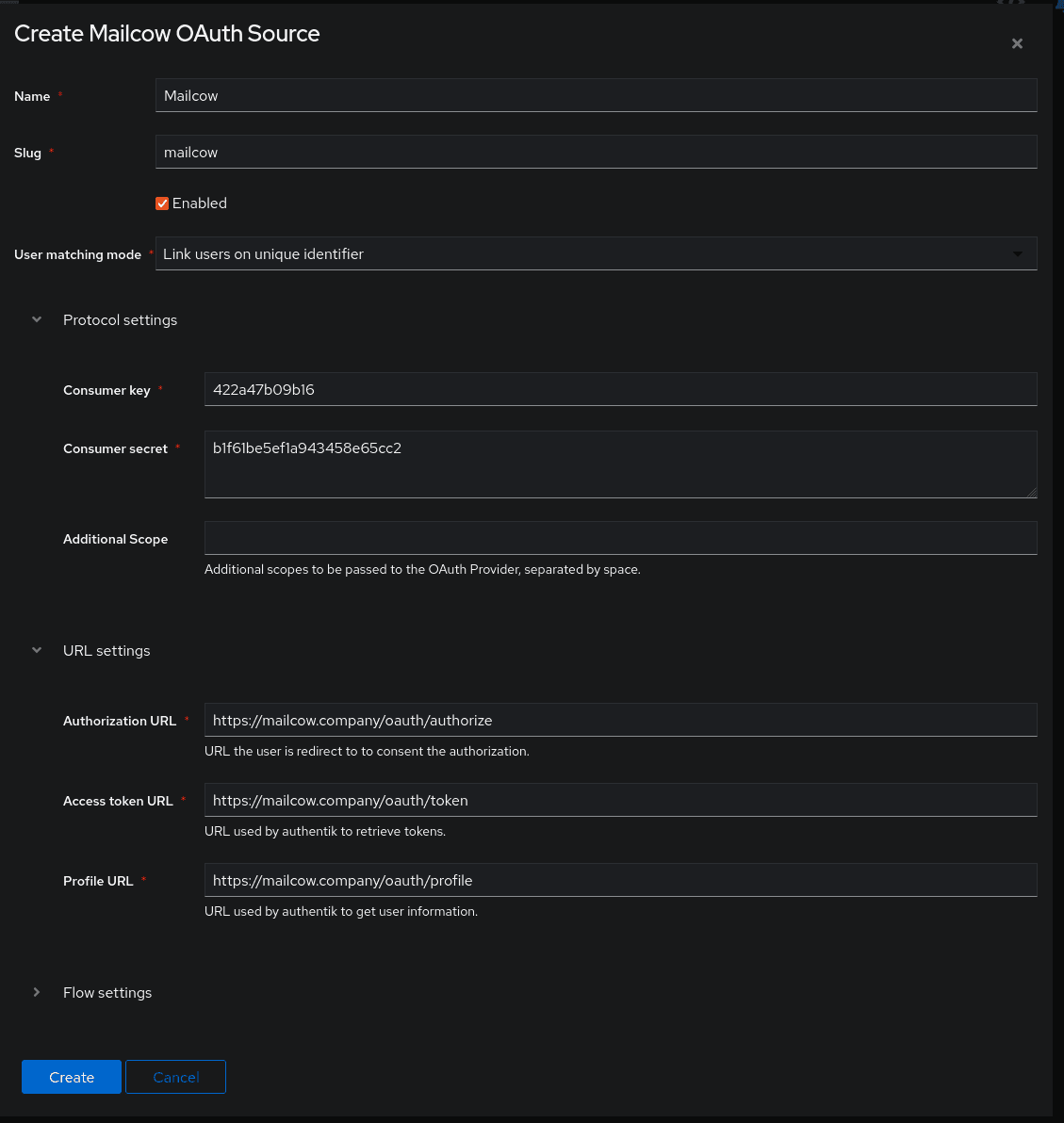 Here is an example of a complete authentik Mailcow OAuth Source